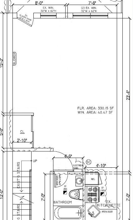 - Bathroom features tub/shower combo, as well as above and below sink storage